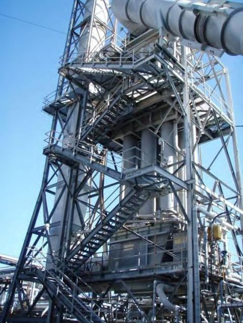 The Sulfur Recovery Units #2 (SRU2) convert the waste H2S streams from the hydrotreating and fuel gas treating units into liquid sulfur. This conversion involves combustion of H2S and reaction of the sulfur dioxide (SO2) formed with H2S over an alumina catalyst to form